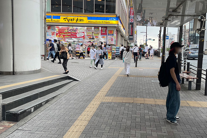 - 地上に上がるとマツモトキヨシを向かいに右手に直進します