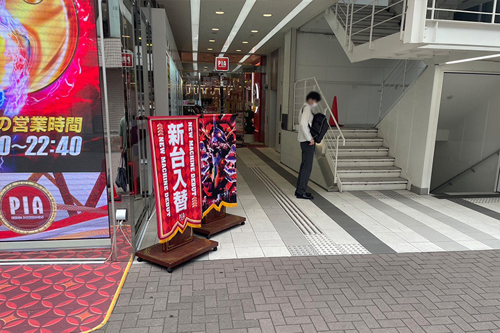 - 直進すると右手に1階PIA(パチンコ店)があるビルが当サロンが入っている建物となります